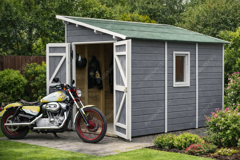 Деревянный гараж для мотоциклов и квадроциклов — это специализированное сооружение, созданное для надёжного хранения мототехники и сопутствующего оборудования. Прочная конструкция из натуральной древесины обеспечивает оптимальный микроклимат внутри: материал дышит, предотвращая скопление влаги и образование коррозии на металлических деталях, а также защищает от резких перепадов температур. Это идеальная среда для сохранения работоспособности двигателей, ходовой части и внешнего вида техники в межсезонье и во время длительного простоя. Внутреннее пространство организовано с учётом потребностей владельца: предусмотрены полки и стеллажи для размещения шлемов, защитной экипировки, инструментов, запасных частей и расходных материалов. Всё необходимое всегда под рукой, а порядок внутри гаража позволяет быстро подготовиться к выезду или провести техническое обслуживание. Продуманная система хранения исключает беспорядок и экономит время. Внешний вид строения гармонично вписывается в любой ландшафт, будь то загородный участок или территория загородного дома. Древесина придаёт естественность и экологичность, а при желании гараж может быть окрашен в любой цвет или покрыт защитными составами для увеличения срока службы. Конструкция рассчитана на высокие нагрузки, устойчива к ветру и осадкам, что гарантирует сохранность мотоциклов и квадроциклов даже в суровых погодных условиях. Инвестиция в такой гараж — это вложение в долговечность техники и собственное спокойствие.