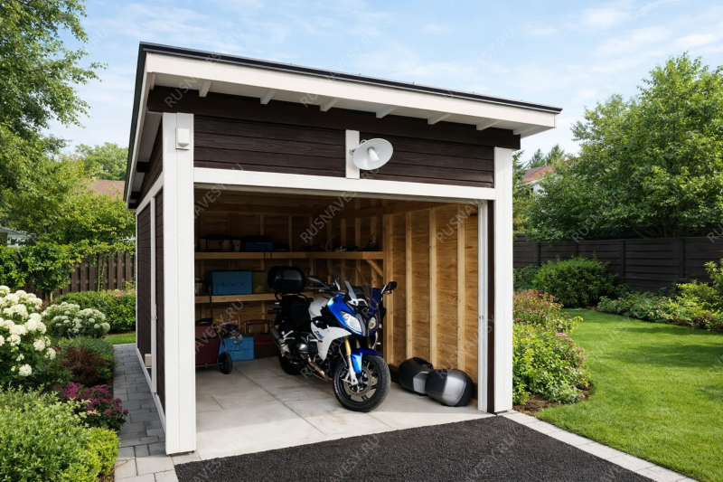 Деревянный гараж для мотоциклов и квадроциклов — это специализированное сооружение, созданное для надёжного хранения мототехники и сопутствующего оборудования. Прочная конструкция из натуральной древесины обеспечивает оптимальный микроклимат внутри: материал дышит, предотвращая скопление влаги и образование коррозии на металлических деталях, а также защищает от резких перепадов температур. Это идеальная среда для сохранения работоспособности двигателей, ходовой части и внешнего вида техники в межсезонье и во время длительного простоя. Внутреннее пространство организовано с учётом потребностей владельца: предусмотрены полки и стеллажи для размещения шлемов, защитной экипировки, инструментов, запасных частей и расходных материалов. Всё необходимое всегда под рукой, а порядок внутри гаража позволяет быстро подготовиться к выезду или провести техническое обслуживание. Продуманная система хранения исключает беспорядок и экономит время. Внешний вид строения гармонично вписывается в любой ландшафт, будь то загородный участок или территория загородного дома. Древесина придаёт естественность и экологичность, а при желании гараж может быть окрашен в любой цвет или покрыт защитными составами для увеличения срока службы. Конструкция рассчитана на высокие нагрузки, устойчива к ветру и осадкам, что гарантирует сохранность мотоциклов и квадроциклов даже в суровых погодных условиях. Инвестиция в такой гараж — это вложение в долговечность техники и собственное спокойствие.
