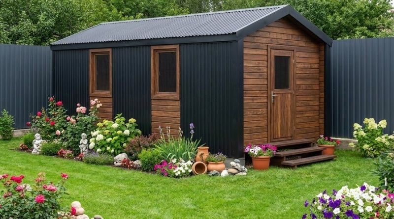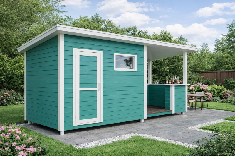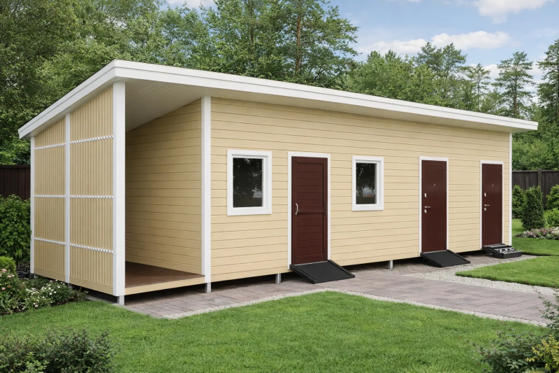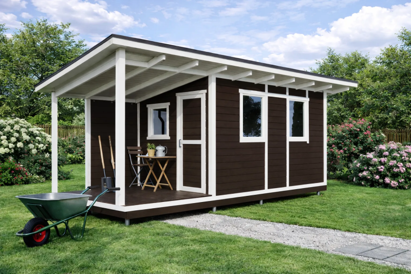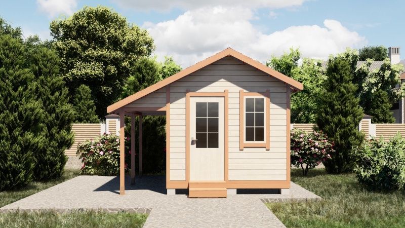 Габариты: 3×9 + навес 1,5×3 м. Площадь: 27 м²
