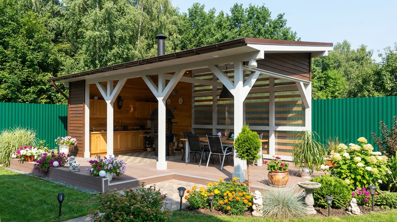 Каждый объект индивидуален. Площадь участка, назначение помещения, архитектура основного дома — всё влияет на итоговое решение. Вот основные типы конструкций, которые можно заказать в «Русских Навесах»: