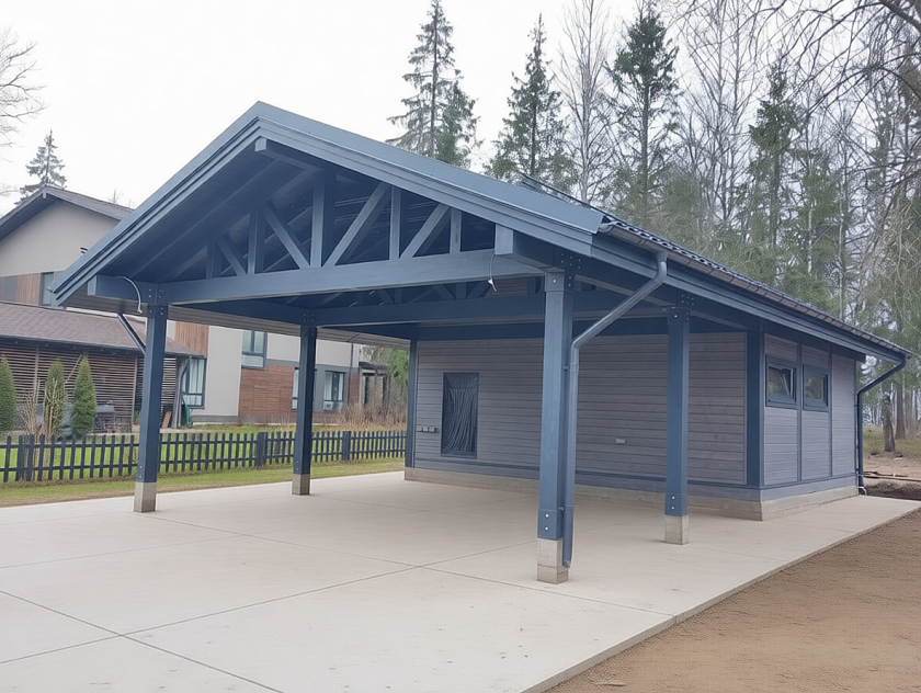 Компания «Русские навесы» – крупнейшей производитель навесов для одного автомобиля или нескольких единиц автотехники. В своих изделиях мы используем пиломатериалы из хвойных сортов древесины (ель, сосну), а в качестве конструктивного элемента – клееный брус.