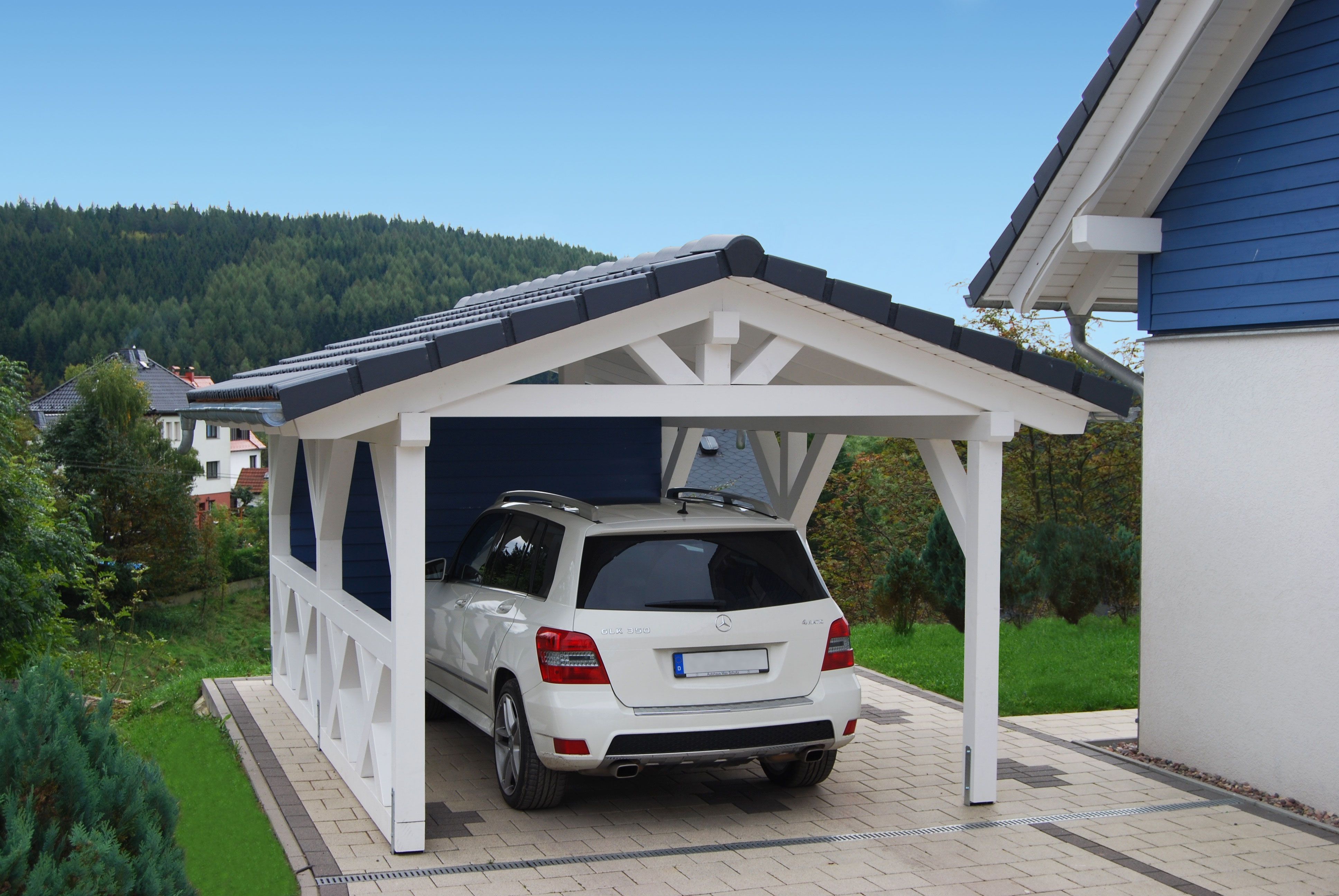 • Навес к частному дому для автомобиля ГРИМСТАД